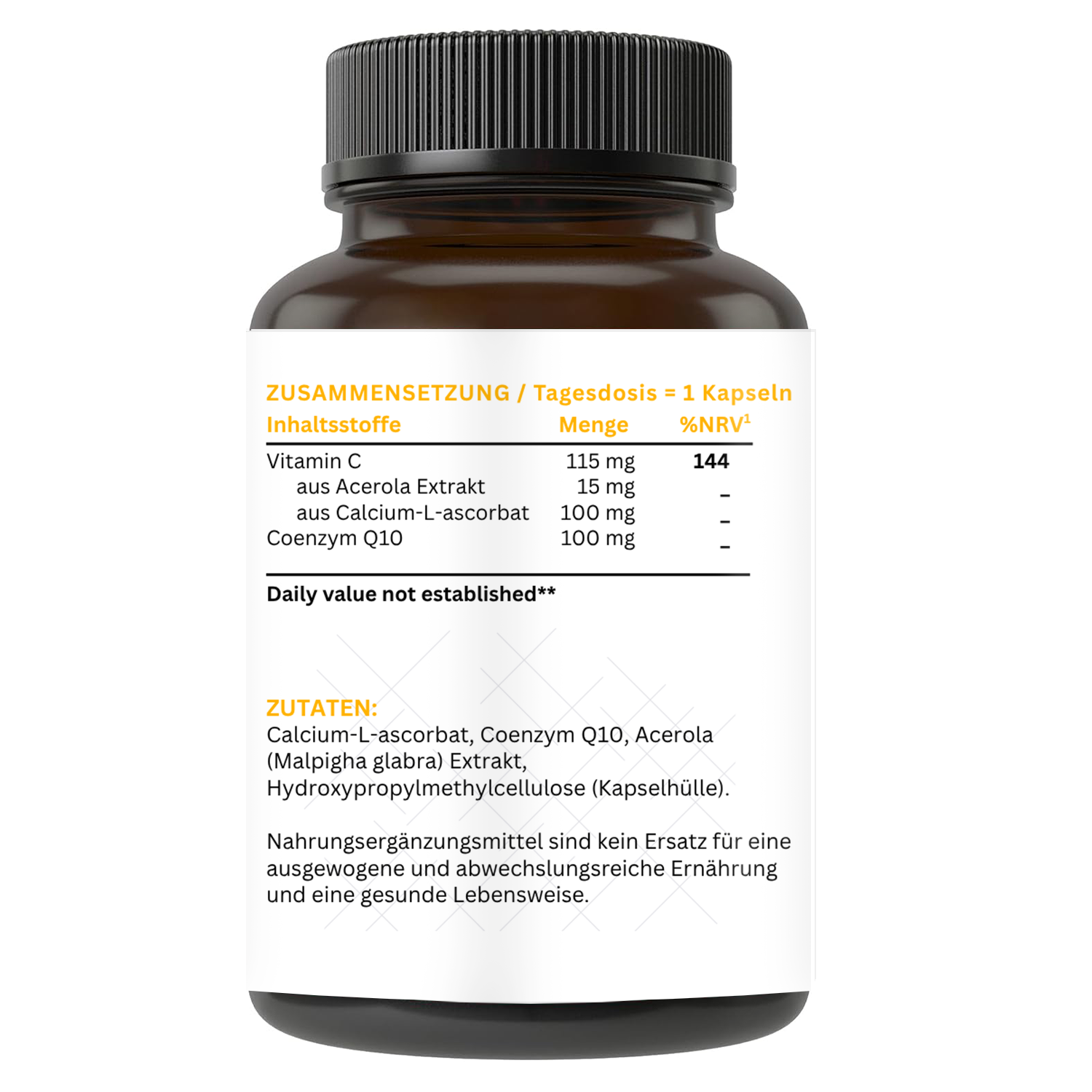 | Additives | Coenzym Q10, Vitamin C aus Acerola & Calcium-L-Ascorbat |